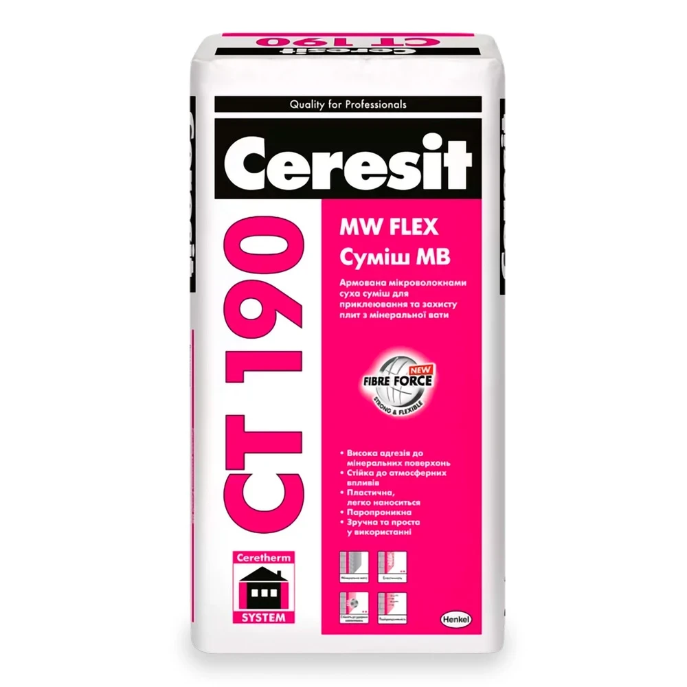 Ceresit CT 190 MW FLEX Суміш МВ (25кг) Армована мікроволокнами суха суміш