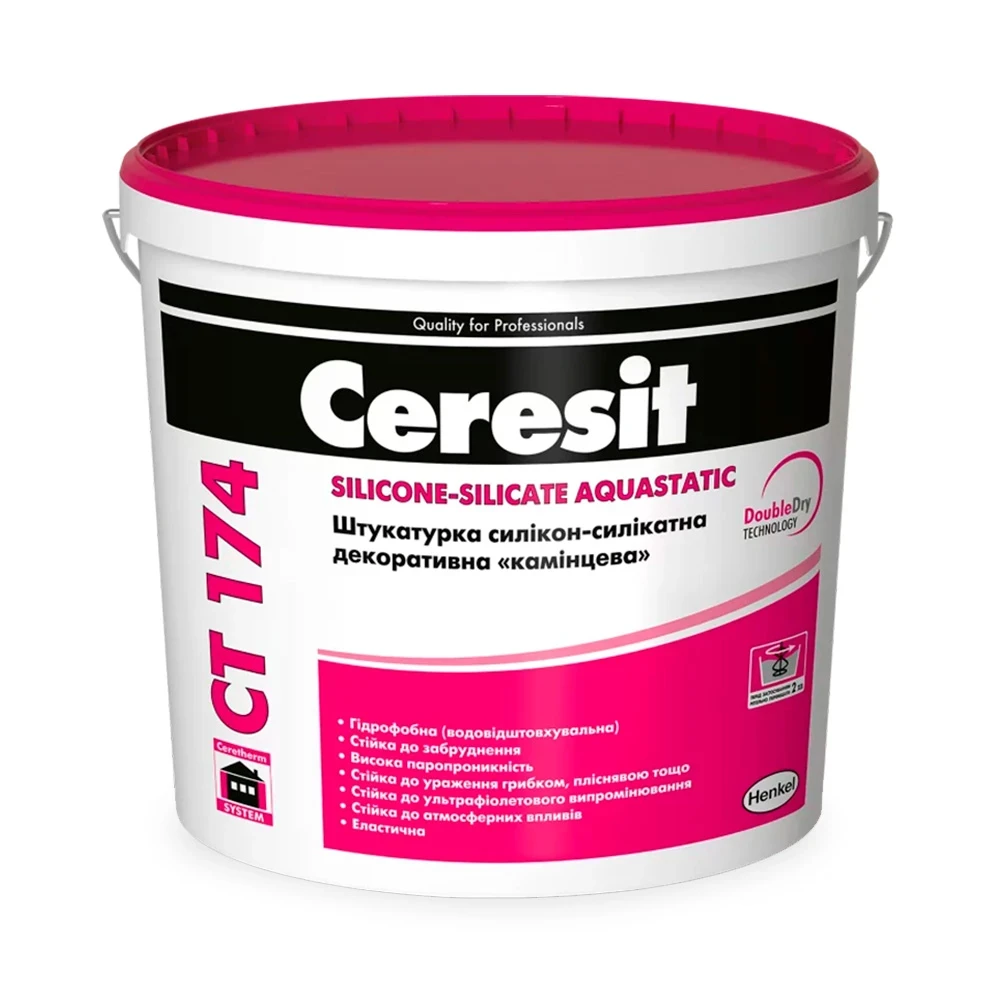 Ceresit CT 174 SILICONE-SILICATE AQUASTATIC, Прозорий BASE С (25кг) Штукатурка "баранець" силікон-силікатна, зерно 1,5мм