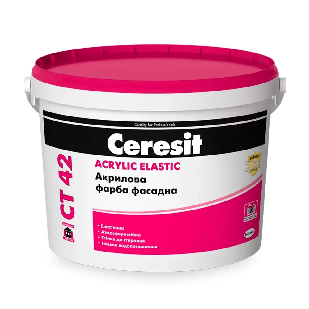 Ceresit CT 42 ACRYLIC ELASTIC Біла (10л) Фарба акрилова для фарбування поверхонь усередині та зовні будівель